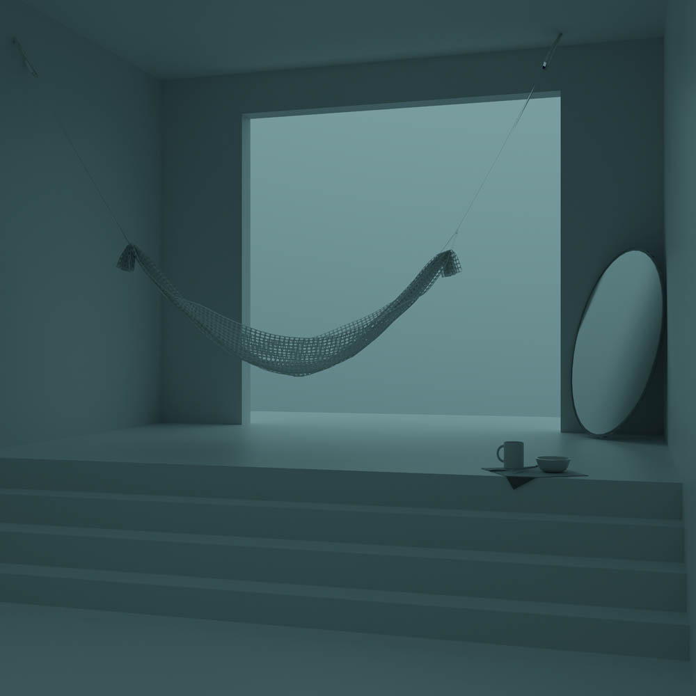 Referencing the aesthetic of imaginary architectural spaces popular on social media as a respite from the business of online life, Into the Void takes this concept a step further by inviting the participant to experience these places spatially. The dream-like landscapes are rendered in gradients of blue creating the impression of an endless blue void. The text and sound reference guided meditation and ASMR (Autonomous sensory meridian response) videos popular online, cultivating a feeling of calm while meditating on the concept of nothingness, asking the participant to consider what is gained and what is lost in letting go.
